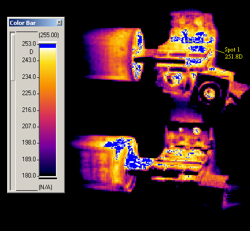 Image of Fuseblock illustrating use of blue ISOTHERM to show the hotest spot in the device.